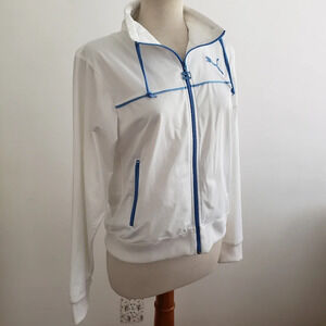Vintage Puma Jacket / Athleisure / White & Blue / Fits Medium