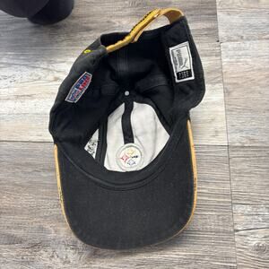 Vintage Puma NFL Pro Line Pittsburgh Steelers Black Brown Yellow Mens One Size Adjustable Cap Hat embroidered classic team logo black brown yellow velcro adjustable back lightweight classic sportswear sporty football authentic hat made in Dominican Republic, faded with writing throughout