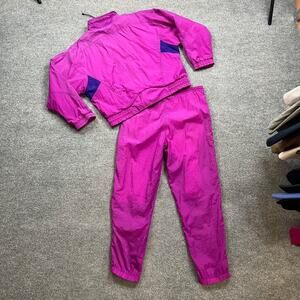Vintage Puma Tracksuit Womens M Berry Nylon Windbreaker Lined Jacket Pants *READ