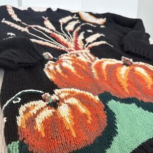 Vintage Pumpkin Harvest Embroidered Sweater L Grandma RARE Premium Halloween