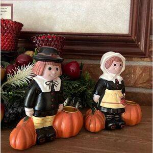 Vintage Pumpkin Harvest Pilgrim Candle Holders