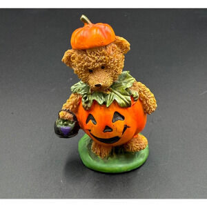 * Vintage Pumpkin Teddy Bear Figurine Halloween Mini Statue
