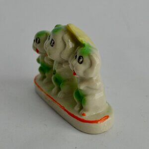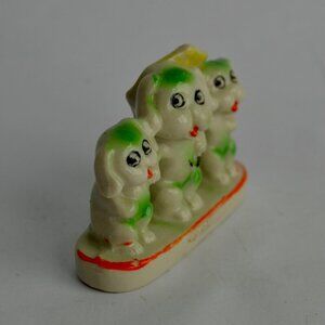 Vintage Puppies Trio with Umbrella Ceramic Figurine Japan