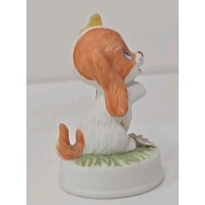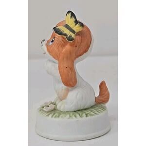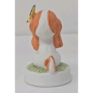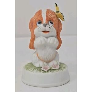 Vintage Puppy Dog Figurine Napcoware Butterfly Flowers Bisque Mini Napco #9185 U