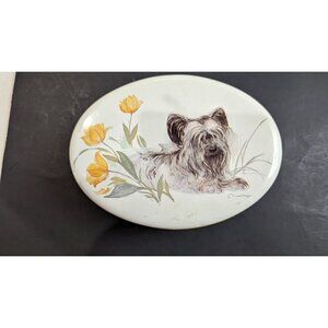 Vintage Puppy Dog Metal tin made in England sky Terrier Glasgow Terrier 7"