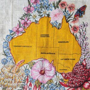 Vintage Pure Linen Souvenir Australian Wildlife Tea Towel