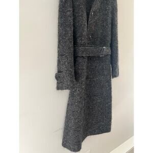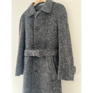 Vintage Pure Wool Long Winter Trench Coat Black White Made in England Medium JL