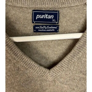 Vintage Puritan 100% Two Ply Lambswool Tan V-Neck Sweater Size XL Men’s