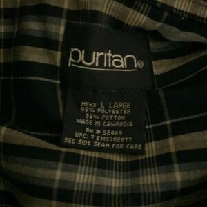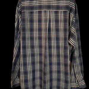 Vintage Puritan Collar Button Up Pocket Plaid Long Sleeve Men L Blue