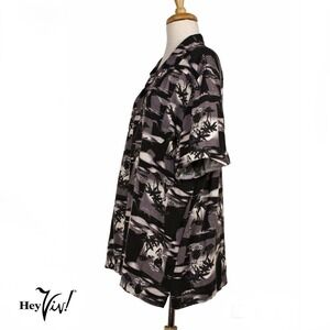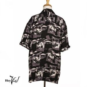 * Special Feature: This Vintage Hawaiian Shirt has a Hula dancer and palm trees, waves and dolphins in a blend of black, white, and gray - Goth Hawaiian perhaps? or an elegant look for Hawaiian evening wear...