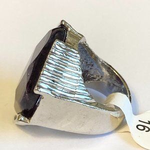 Vintage Purple Amethyst Cocktail Ring Chunky Hexagon Stone Silver Plated 5 6
