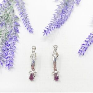 Vintage Purple Amethyst Platinum Braided Chain Dainty Drop Earrings