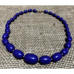 This is a Vintage Purple Beaded Necklace with Clasp, made in the Eighties, and a fun and colorful piece of Costume Jewelry for your collection. It has small golden balls in between the purple beads.