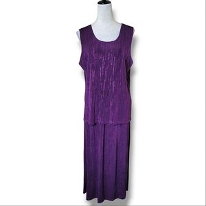 Vintage Purple Beaded Two Piece Set M Slinky Tank Midi Skirt Holiday Evening