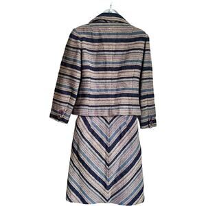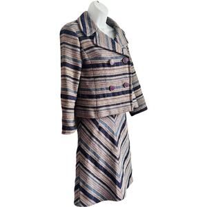 Vintage Purple Blue Tan Striped Tweed Skirt Suit Japanese 90s 6 Cynsia Command