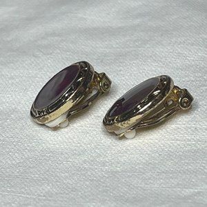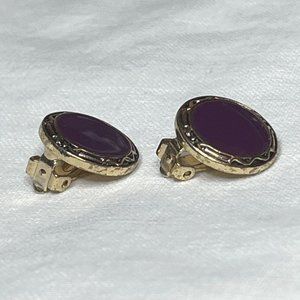 Vintage Purple Button Clip-On Earrings Round Gold-Tone Edge