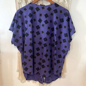 Vintage Purple Button-Up Top Bold Geometric Print SZ L - Eclectic Indie Unique