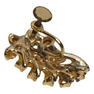 Vintage Purple Clear Rhinestone Gold Tone Floral Clip On Screw Back Earrings 1 1/4"
