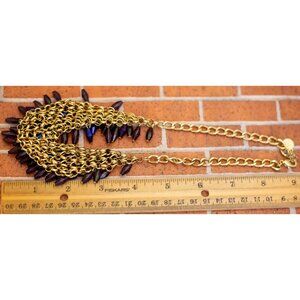 Vintage Purple Dangling Stones Gold Tone Bib Necklace by Liz Claiborne - W24