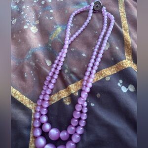 Double-strand purple beaded necklace. Perfect for adding a pop of color to any outfit.
