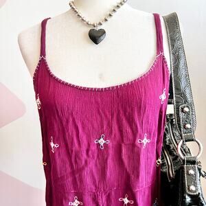 Vintage Purple Embroidered Tank Top Y2K 2000s 90s Minimalist Retro Medium