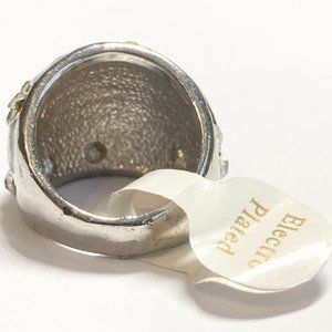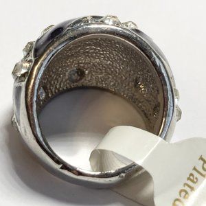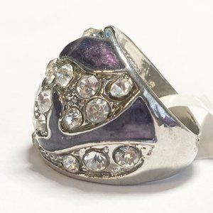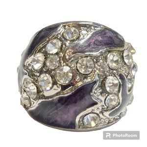 Vintage Purple Enamel Cocktail Ring Silver Plated Crystal Rhinestone Size 6 Boho