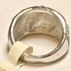 Featuring a silver plated band and round crystal