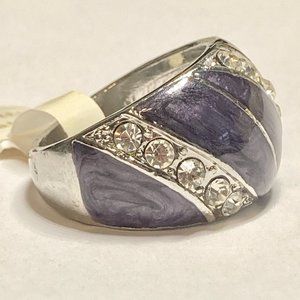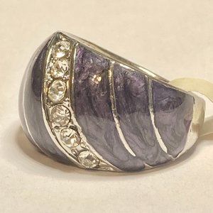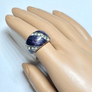 Vintage Purple Enamel Cocktail Ring Silver Plated Crystal Rhinestone Size 7 Boho