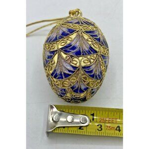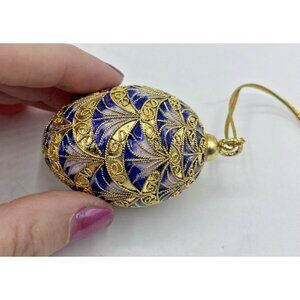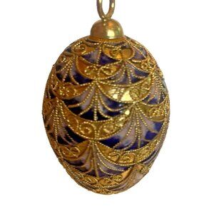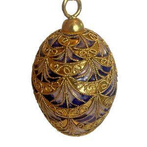 Vintage Purple Enamel Egg Ornament Gold Tone Christmas Holiday Tree Decor In Very good pre-owned condition. No chips or cracks. Add a touch of elegance to your holiday décor with this vintage enamel egg ornament in purple and goldtone. Beautifully crafted with a glossy enamel finish and metallic accents, this collectible ornament evokes the charm of Fabergé-style designs. Perfect for hanging on a Christmas tree, displaying in a curio cabinet, or gifting to a collector of fine ornaments.