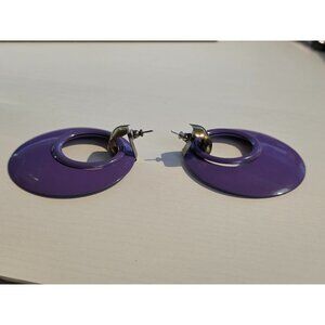 Vintage Purple Enamel Oversized Hoop Statement Earrings With Gold Tone Accent