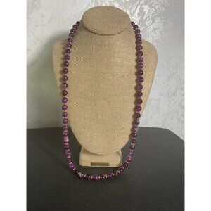 Vintage Purple Faux Agate Bead Necklace With Gold-Tone Clasp
