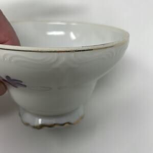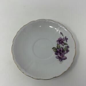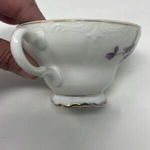 Vintage Purple Flowers Footed Teacup and Saucer Gold Trim Made in Japan