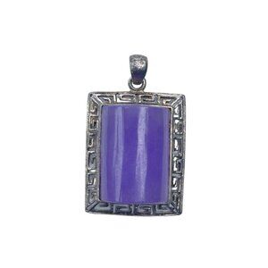This elegant pendant features a gorgeous purple jade stone set in high quality sterling silver setting with a greek key pattern. The piece is also stamped with the signature "GSJ Sterling".