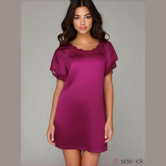 Elegant purple nightgown with delicate lace trim.