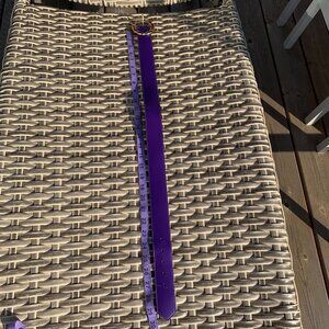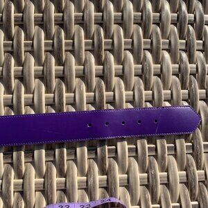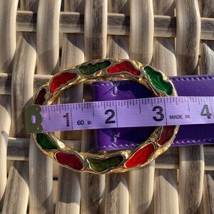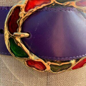 Vintage Purple Leather Statement Gold Buckle Retro 80s 90s Glam Waist Belt