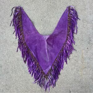 Vintage Purple Leathercraft Process of America Suede Fringe Beaded Shawl Cape