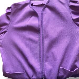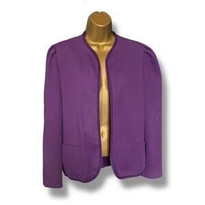 Vintage Purple Open Front Blazer Jacket Women’s Puff Shoulder Pockets Size M