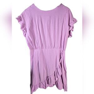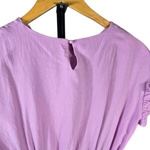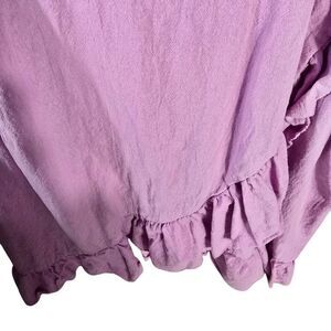 This elegant purple blouse features charming ruffled sleeves and a flowy design, perfect for adding a touch of sophistication to any outfit. The soft fabric drapes beautifully, making it a versatile addition to your wardrobe.
