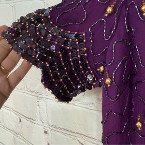 Vintage Purple Sequin Flutter Sleeve Mini Dress silk 80’s size medium cocktail