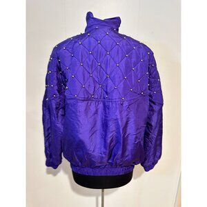 Vintage Purple Silk Bomber Jacket – Quilted Bead Accent – Size M – Fuda Internat
