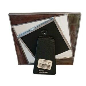 Vintage Purple Slag & Clear Stained Glass Photo Frame 5.5" Fits 3.5" Photo Fetco