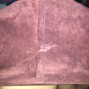 This is a purple suade Coach purse that is in good used condition. I took a photograph of the mark and scuff on the bag, but it's really not too noticeable. The strap and zipper is in excellent condition - having little to no wear. Let me know if I can answer anything else (: