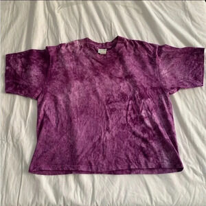 Vintage Purple Tie Dye Cropped Shirt Large Single Stitch Distress Hippie Boho
