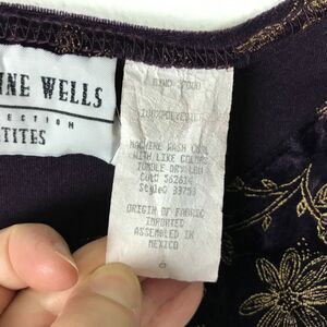 Vintage Purple Velvet Dress Size Petite 6P Gold Floral Long Sleeve Mini Y2K