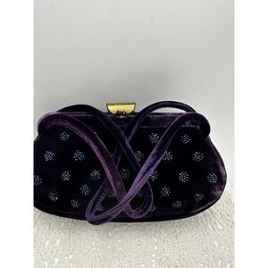 This vintage purple velvet purse is the perfect accessory for any fashion-forward individual. The soft and luxurious material adds a touch of elegance to any outfit, while the spacious interior allows for easy storage of all your essentials. Upgrade your style with this timeless purse option. in Good condition