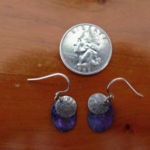 Vintage purple and etched silver disc dangle earrings, purchased in the ‘80s, colors may vary with lighting