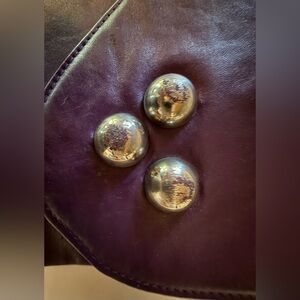 Vintage Jane Shelton purple leather clutch. Front Metal dome details have flaked off a bit. The rest of the bag is in very good condition. Cloth lining.