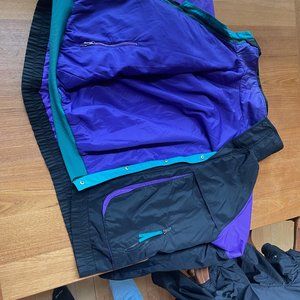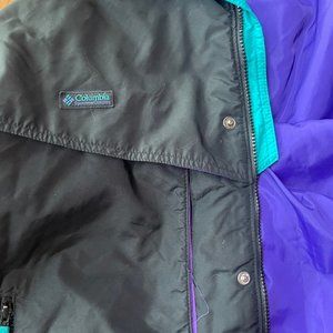 Reversible purple, black and teal vintage Columbia jacket with hood. Size XL