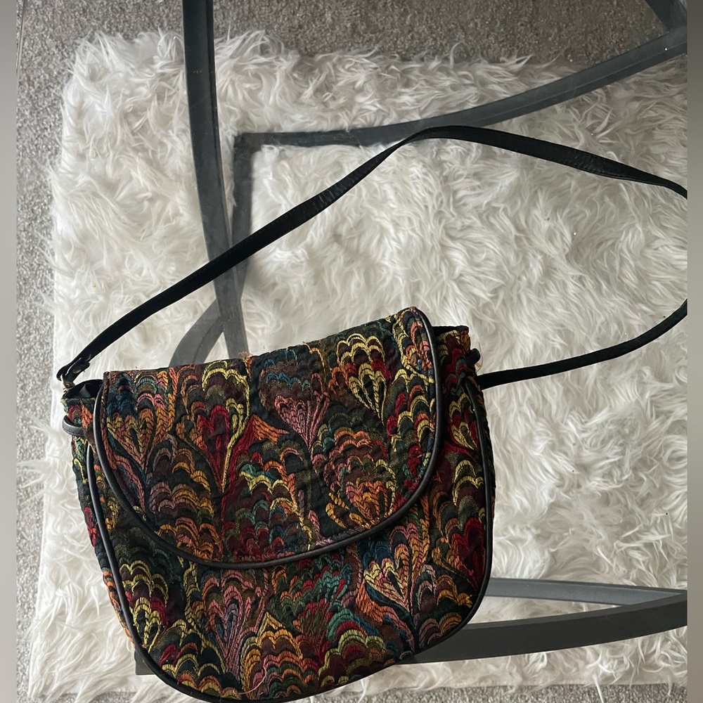 This cute vintage multi-colored crossbody purse is in excellent condition. It is very clean on the inside.