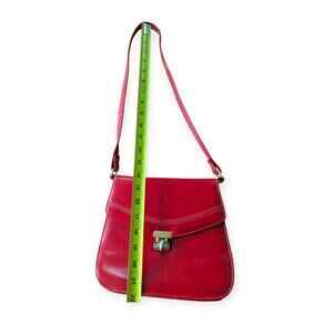 Vintage Purse Red Faux Simulated Leather handbag brass latch